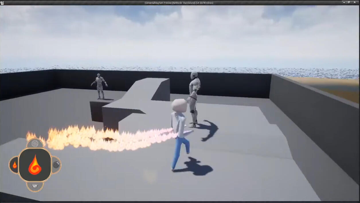 This was the "Dream Game" as many would call it, was, at inception, supposed to be a fighting game with customized movesets, elemental magic, and medieval weaponry. I would first tackle this vision with too much ambition for my level of expertise, initially wanting to create a custom engine for it. This would obviously prove to be overkill.So I settled with Unreal Engine, which had just dropped version 4, and decided to feel out the engine with some studies into 3D asset creation, and so I would be learning Blender alongside it.At some point in this journey, I wound up wanting to add platforming features such as ledge-grabbing and aerial attacks, but found that combined with the customized movesets and multitude of stances, accidental pitfalls became painfully common. Not to say it can't be done, just that it has to be done right.I wound up splitting this project in two. Elemettle would remain the original fighter concept, while another prototype, dubbed Tapped In, would fill the space of the platformer.Some of the key skills acquired from tackling this design would include 3D modeling, texturing, rigging, and animation, GUI design/development, Unreal's Blueprint script and IDE, particle systems, and storing data as a loadable resource.Other key takeaways were that scope creep is your worst enemy, be careful when fusing genres together, and to prototype new projects to gain more transferable skills.