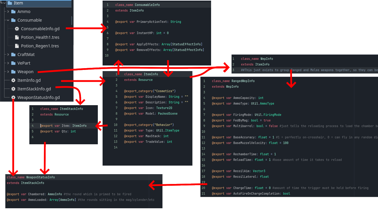 This would be when Unreal Engine became too bloated for my personal preference. Too many new features I wasn't really using just hogging processing power, combined with revamping old tools constantly, I decided it was time for a change, so I switched to the Godot Engine.I decided to tackle the biggest challenge yet: Online multiplayer. I figured the best way to do this, based on the knowledge I already possessed, was through a quake-like. So I drew up an idealized design where you could unlock weapons and abilities, then use them to create custom classes/loadouts.Networking is hard at first. I would go through three attempts from fresh starts before getting the idea of how it all is supposed to function. You have your server who recieves input from the clients and processes it before distributing the results. I had set this up completely backwards on my final attempt, where the clients were running commands and telling the server what happened. Very cheat-prone, but I know what I did wrong and how to correct it for next time.